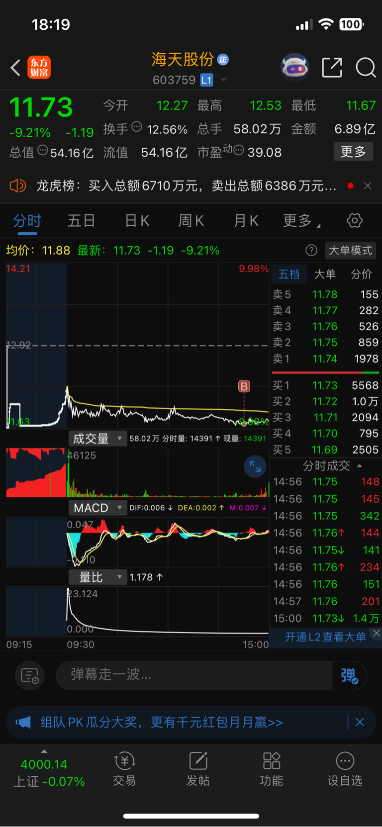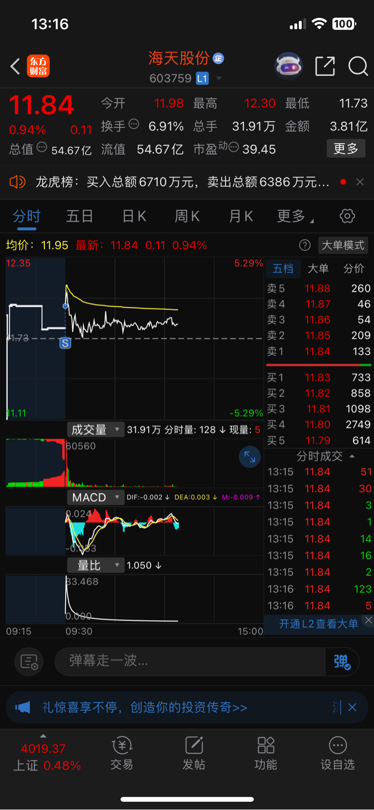小号昨天尾盘11.68元买入捡便宜的今天早上冲高一瞬间就赚钱清仓了