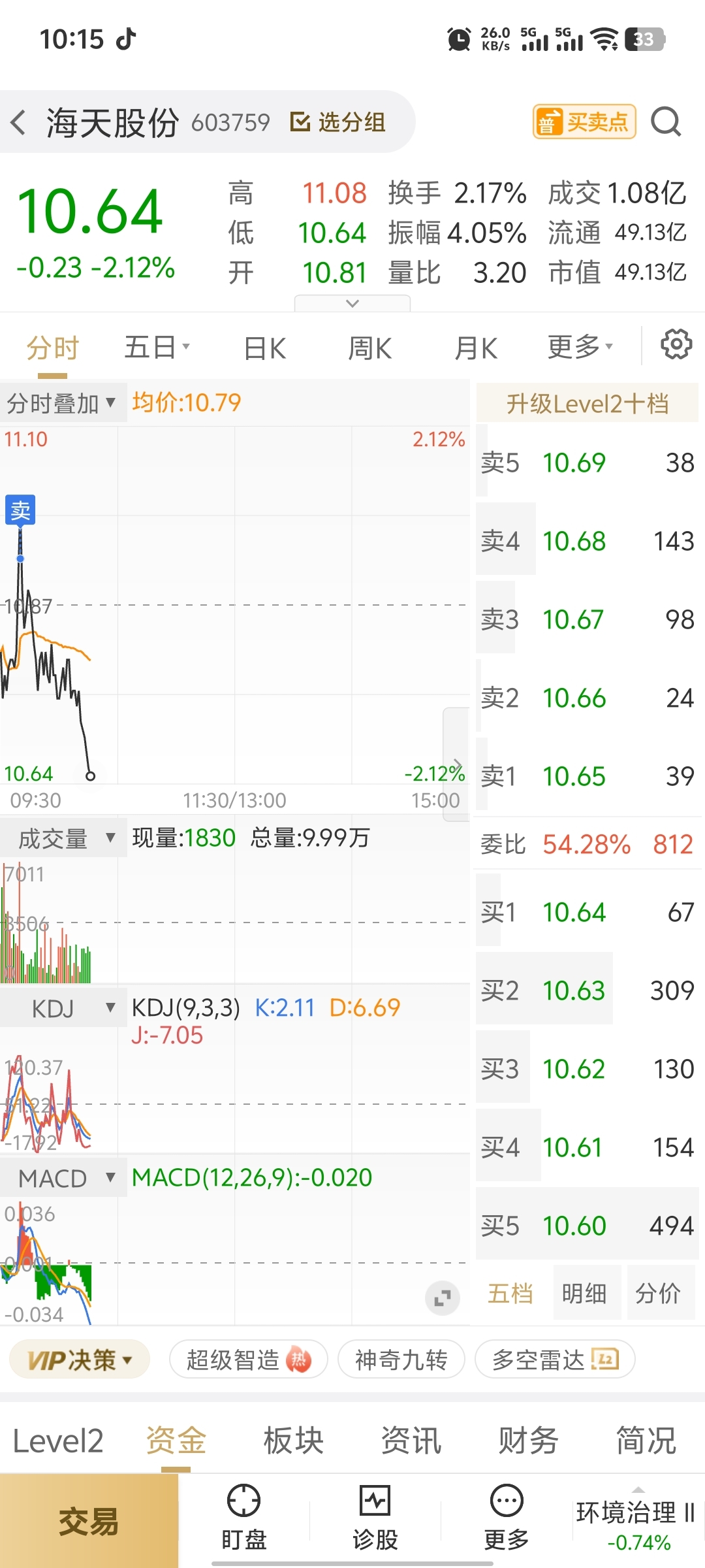 $海天股份(SH603759)$ 试盘失败,只能跑了,等企稳再进