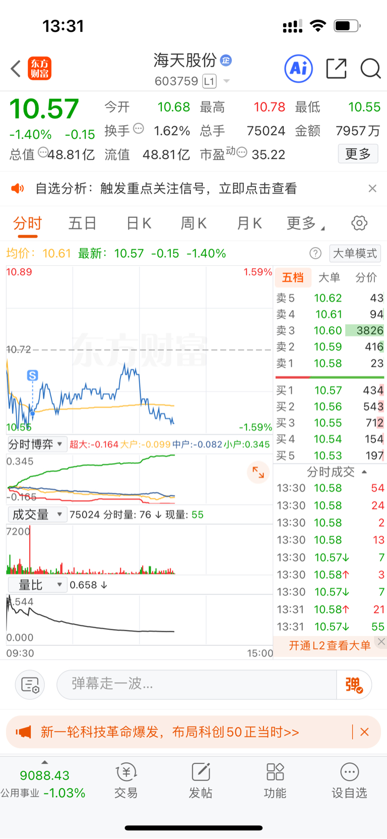 $海天股份(SH603759)$ 我以为我会卖飞,你是不争气呀!8块能接我回来不?