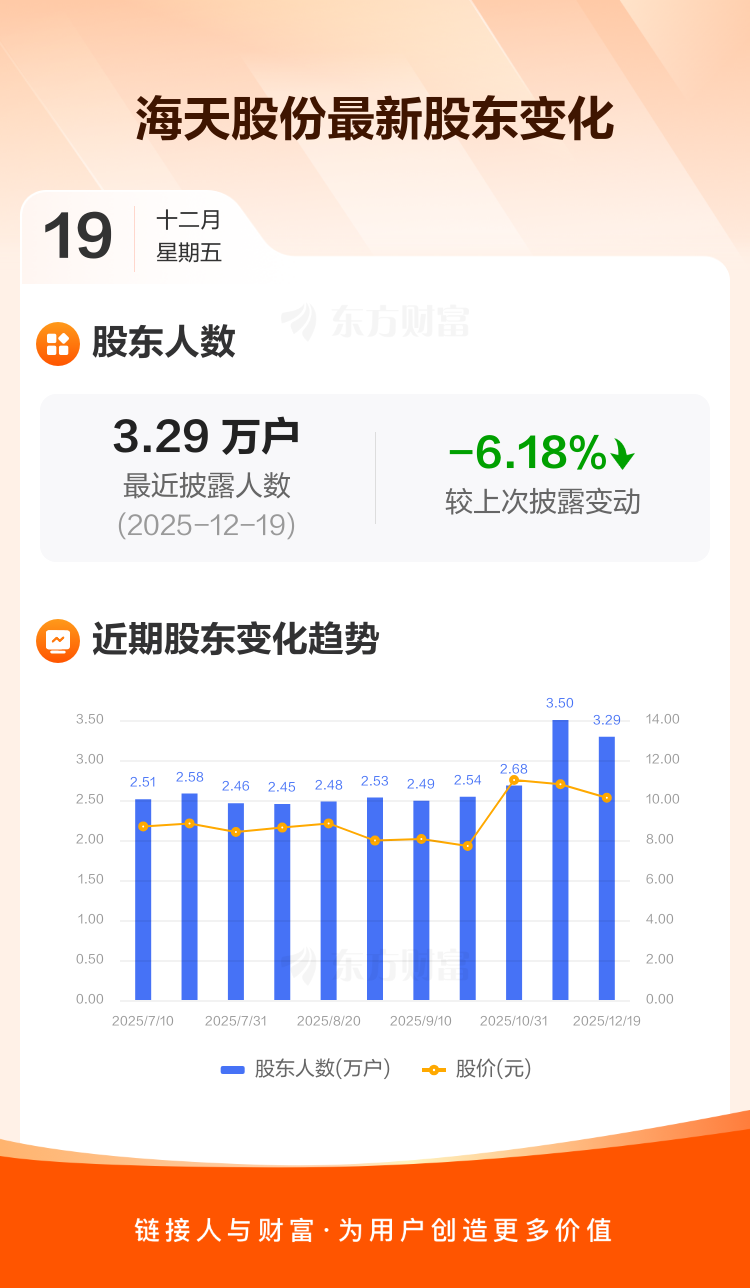 海天股份:截至12月19日最新股东户数3.29万户,较上期减少6.18%