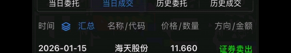 海天股份 11.66 元卖出大仓位
