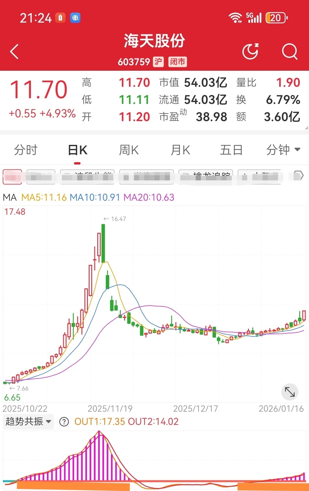 $海天股份(SH603759)$ 海天股份和海特生物调整到位,趋势共振低位发出红柱,向上空间巨大,点到为止。仅供有财运的人参考。