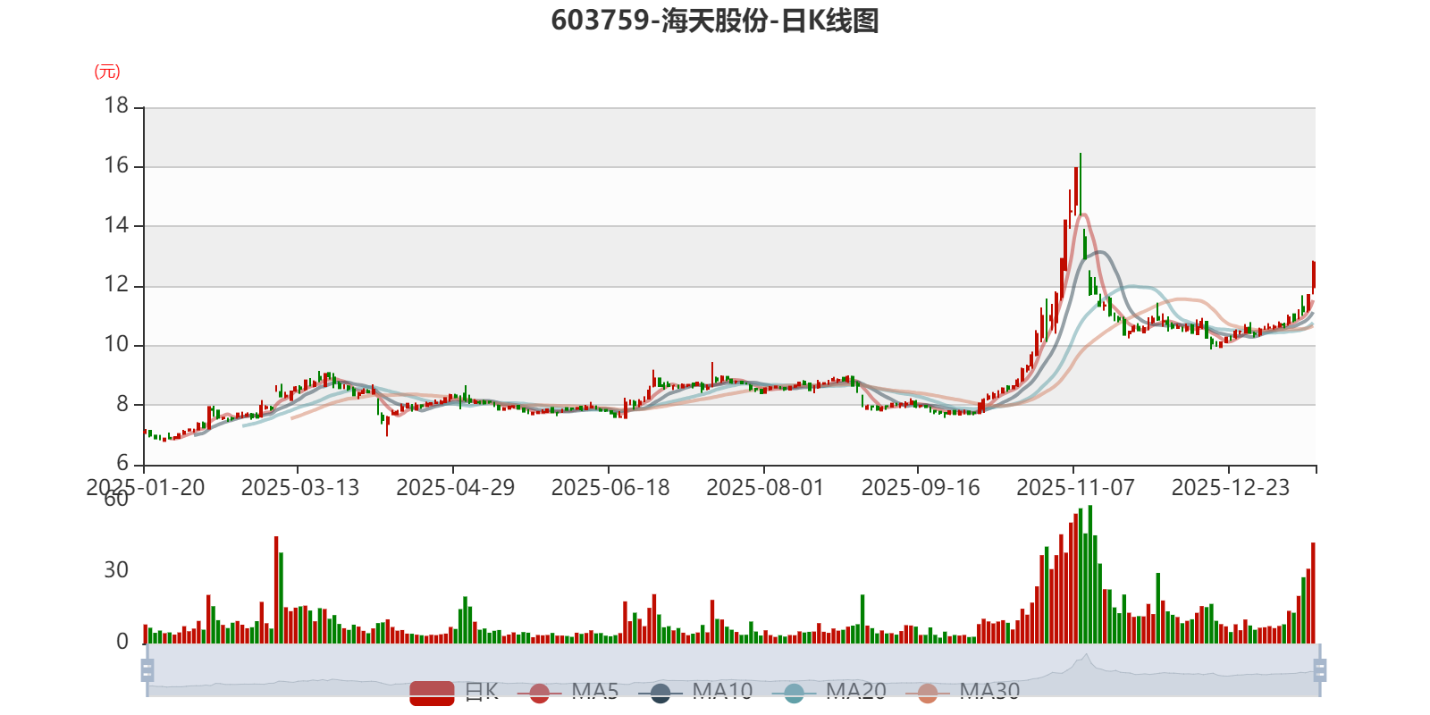 中证智能财讯海天股份(603759)1月19日晚间披露2025年度业绩预告,预计2025年归母净利润1.66亿元至2.03亿元,同比下降33.4%-45.54%;扣非净利润预计1.4亿元-1.77亿元,同比下降34.89%-48.5%。以1月19日收盘价计算,海天股份目前市盈率(TTM)约为29.09倍-35.58倍,市净率(LF)约2.07倍,市销率(TTM)约2.35倍。
