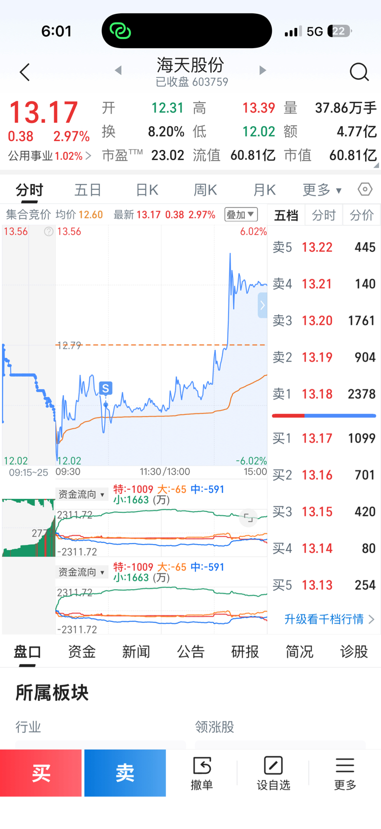 $海天股份(SH603759)$ 早上大盘跳水 我也跳水了