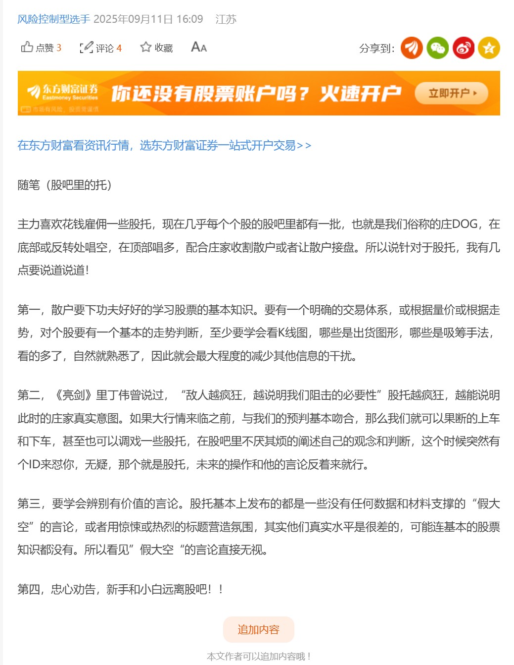 老帖新发,我正常在股吧不怎么发帖,因为有太多的股托,我就把我之前的文章重新发一下,新手和小白要仔细阅读。