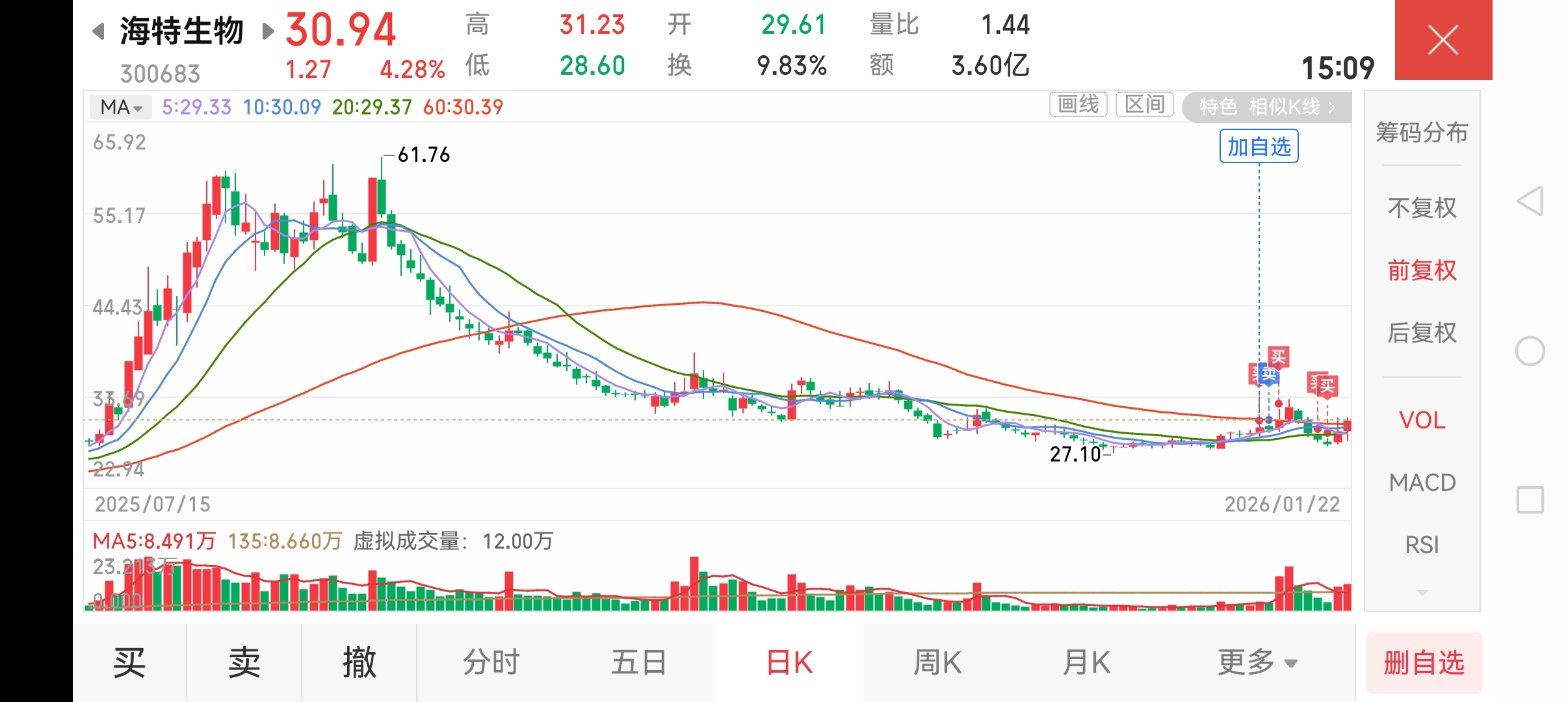 远离前几天低位唱空海特生物的真托,那些人全是负能量的人。但他们唱空我买入,也得感