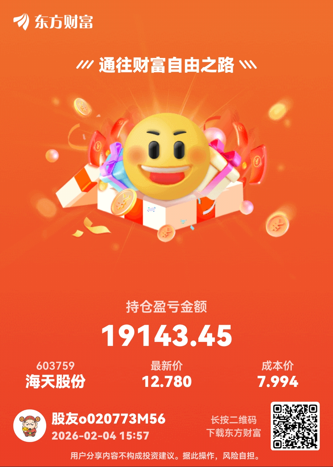 温馨提示: 1.根据《证券法》规定,禁止编造、传播虚假信息或者误导性信息,扰乱证券市场;2.用户在本社区发表的所有资料、言论等仅代表个人观点,与本网站立场无关,不对您构成任何投资建议。用户应基于自己的独立判断,自行决定证券投资并承担相应风险。《东方财富社区管理规定》