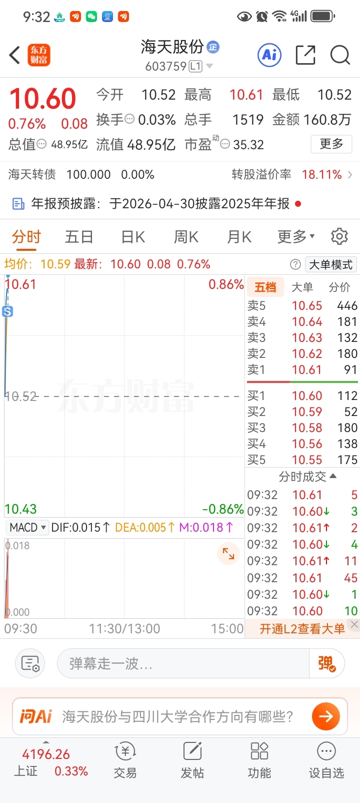 $海天股份(SH603759)$ 收盘再接回来,早上冲高要减仓