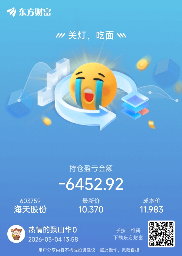 温馨提示: 1.根据《证券法》规定,禁止编造、传播虚假信息或者误导性信息,扰乱证券市场;2.用户在本社区发表的所有资料、言论等仅代表个人观点,与本网站立场无关,不对您构成任何投资建议。用户应基于自己的独立判断,自行决定证券投资并承担相应风险。《东方财富社区管理规定》