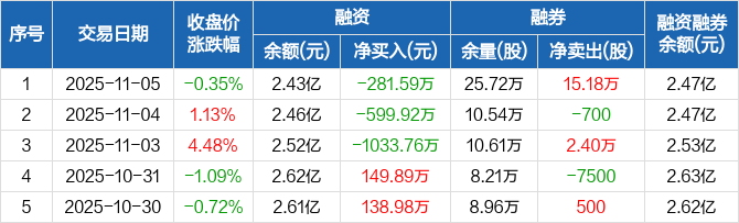 隆鑫通用:融资余额2.43亿元,创近一年新低(11-05)
