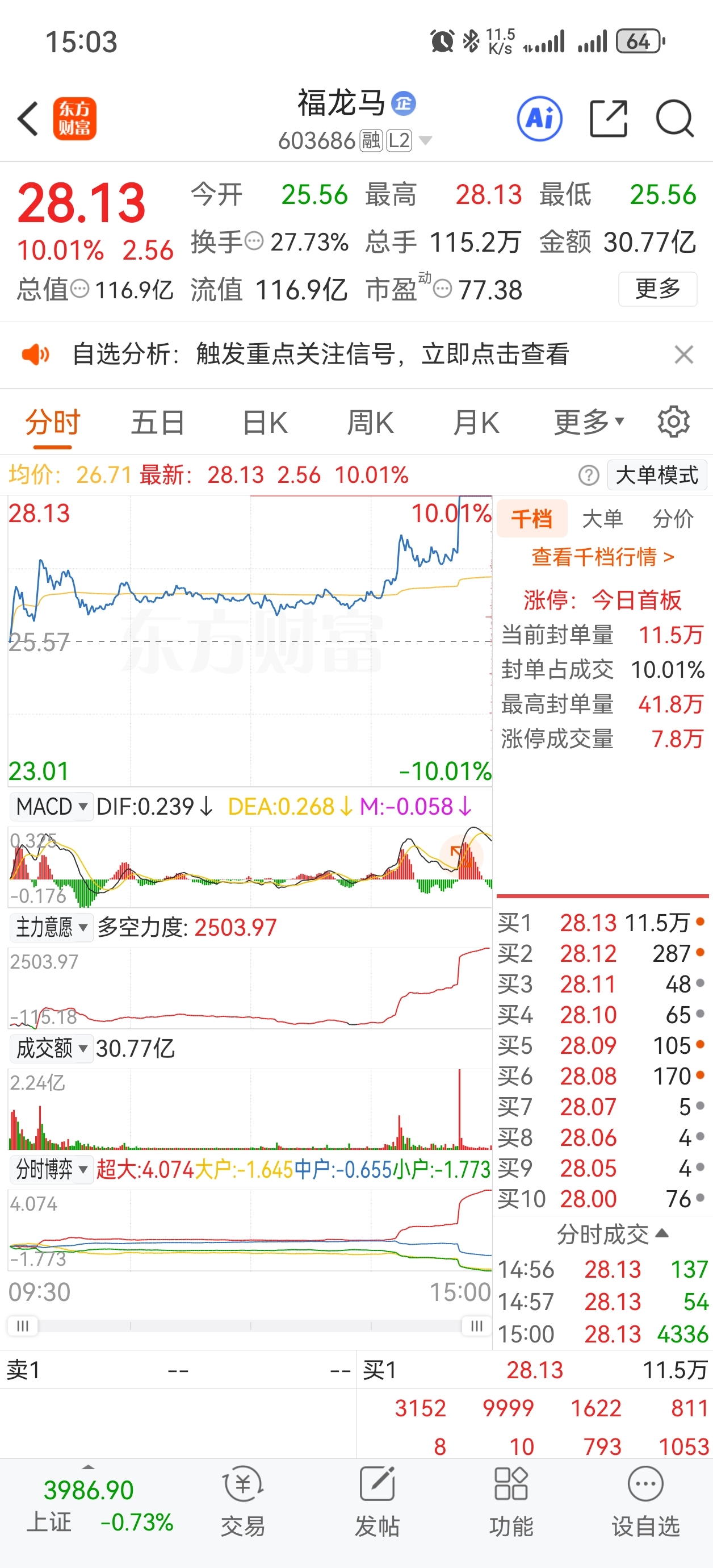 $中马传动(SH603767)$ 看看人家福龙马,你啥也不是,拉一点就砸。吗