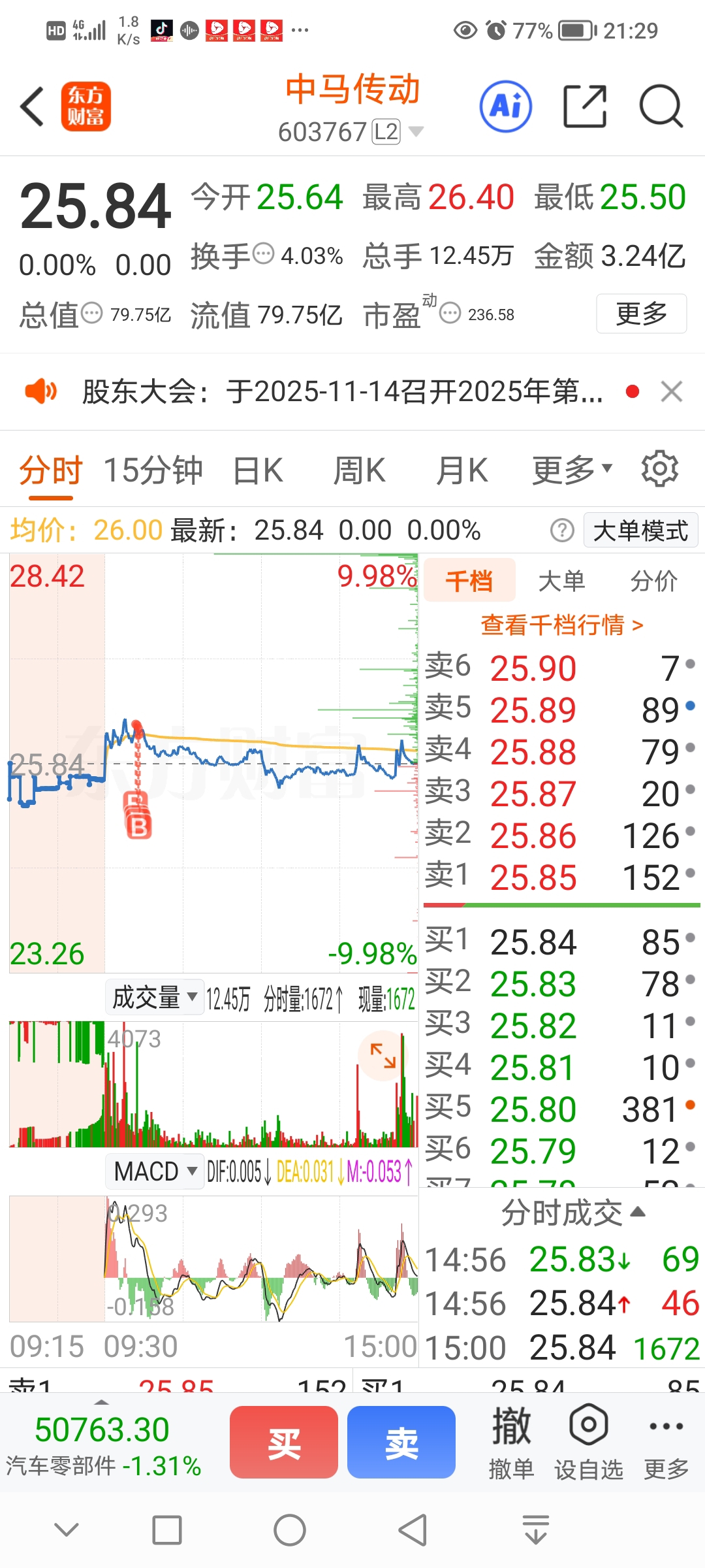 $中马传动(SH603767)$ 明天涨停板让今天叫的拍大腿,跌不动啦,,走着瞧