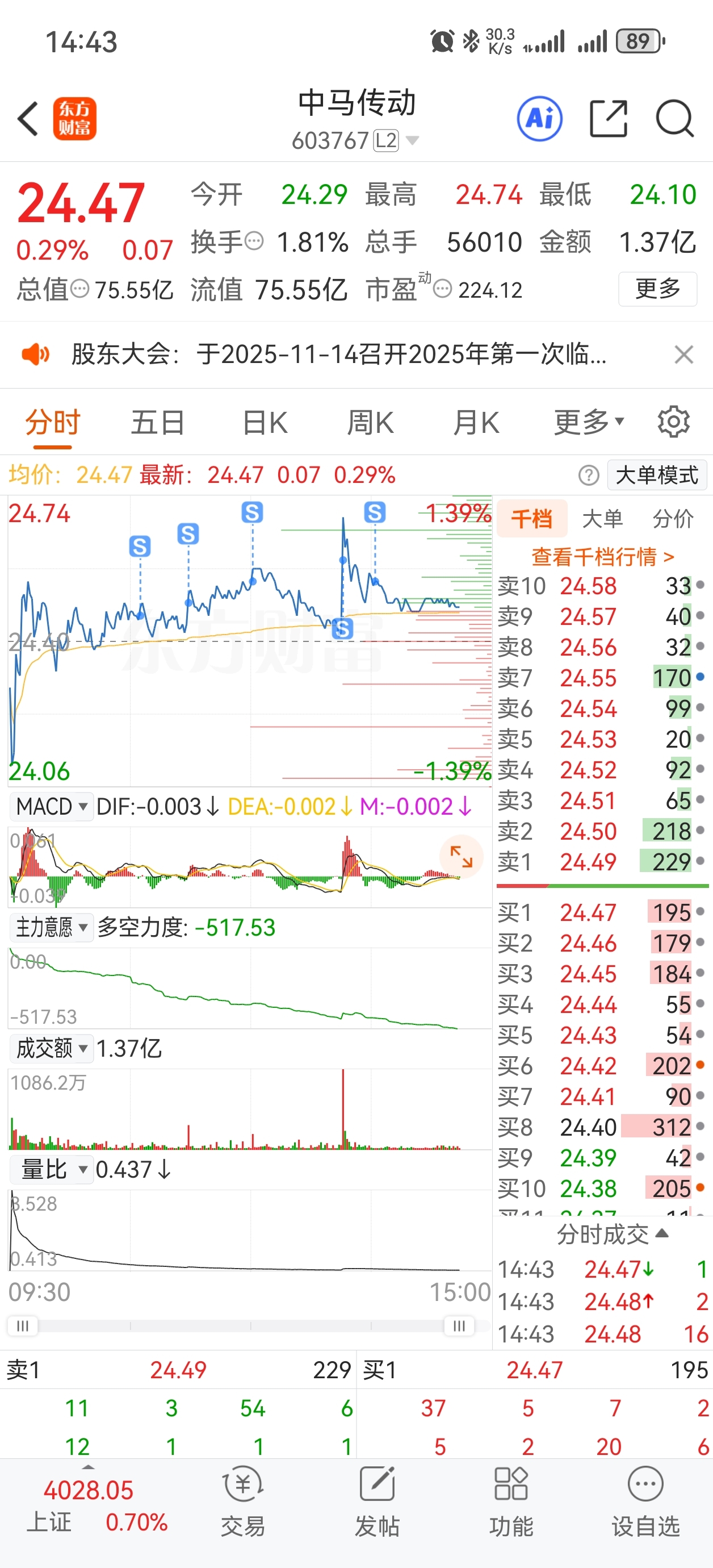 $中马传动(SH603767)$ 走了不陪狗桩玩了
