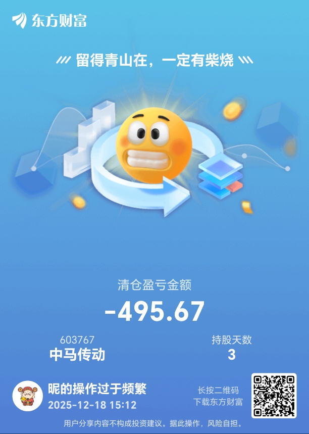 $中马传动(SH603767)$ 割了,亏了0.5%,送给主力买条华子抽,太难受了,有种被大石头压住胸口的无力感,哈哈