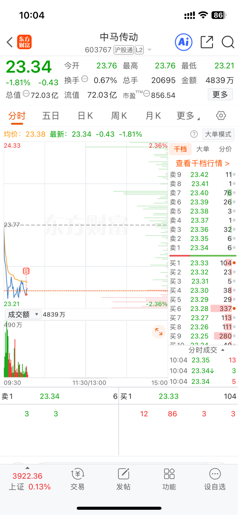 $中马传动(SH603767)$ 第一次买这个票,买一点看看。