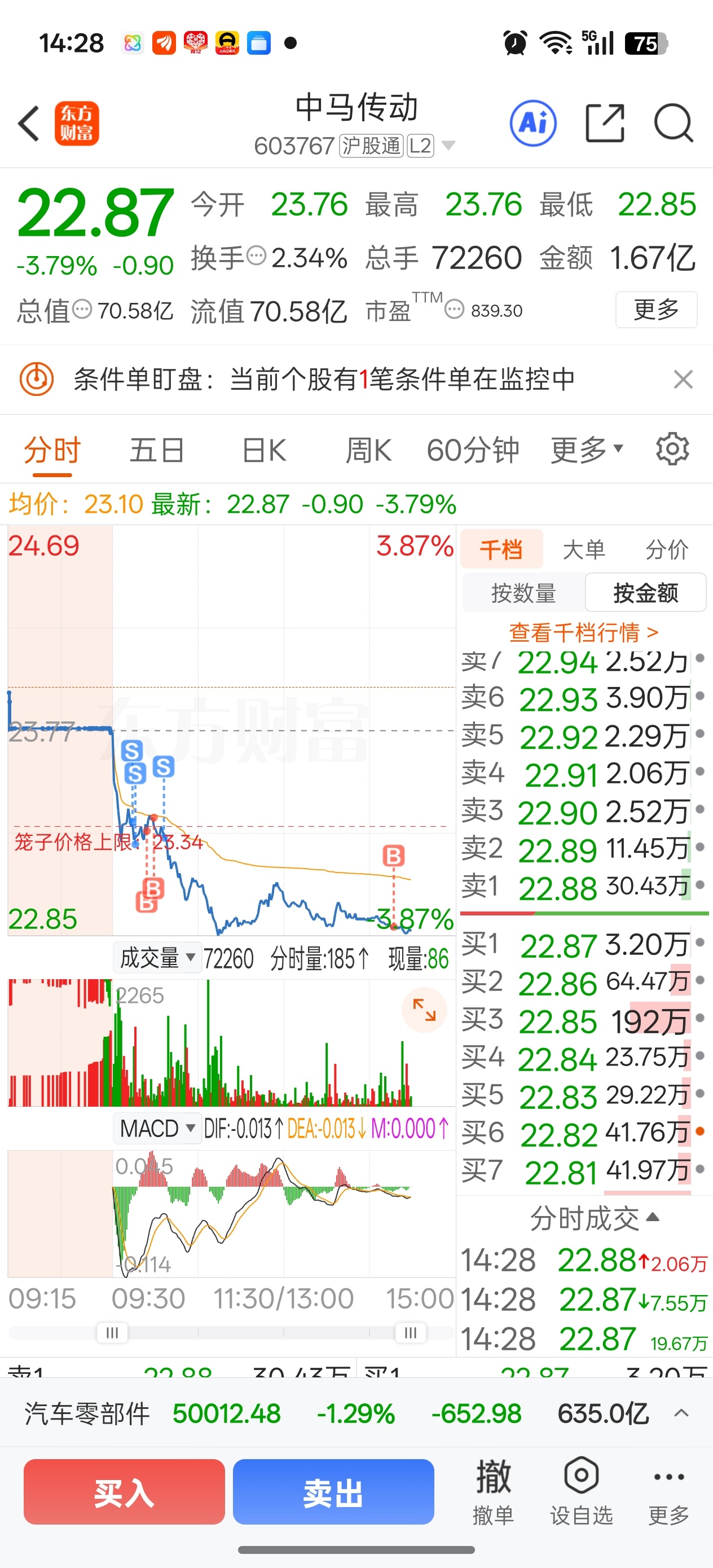 $中马传动(SH603767)$ 明天继续跌,明天继续补