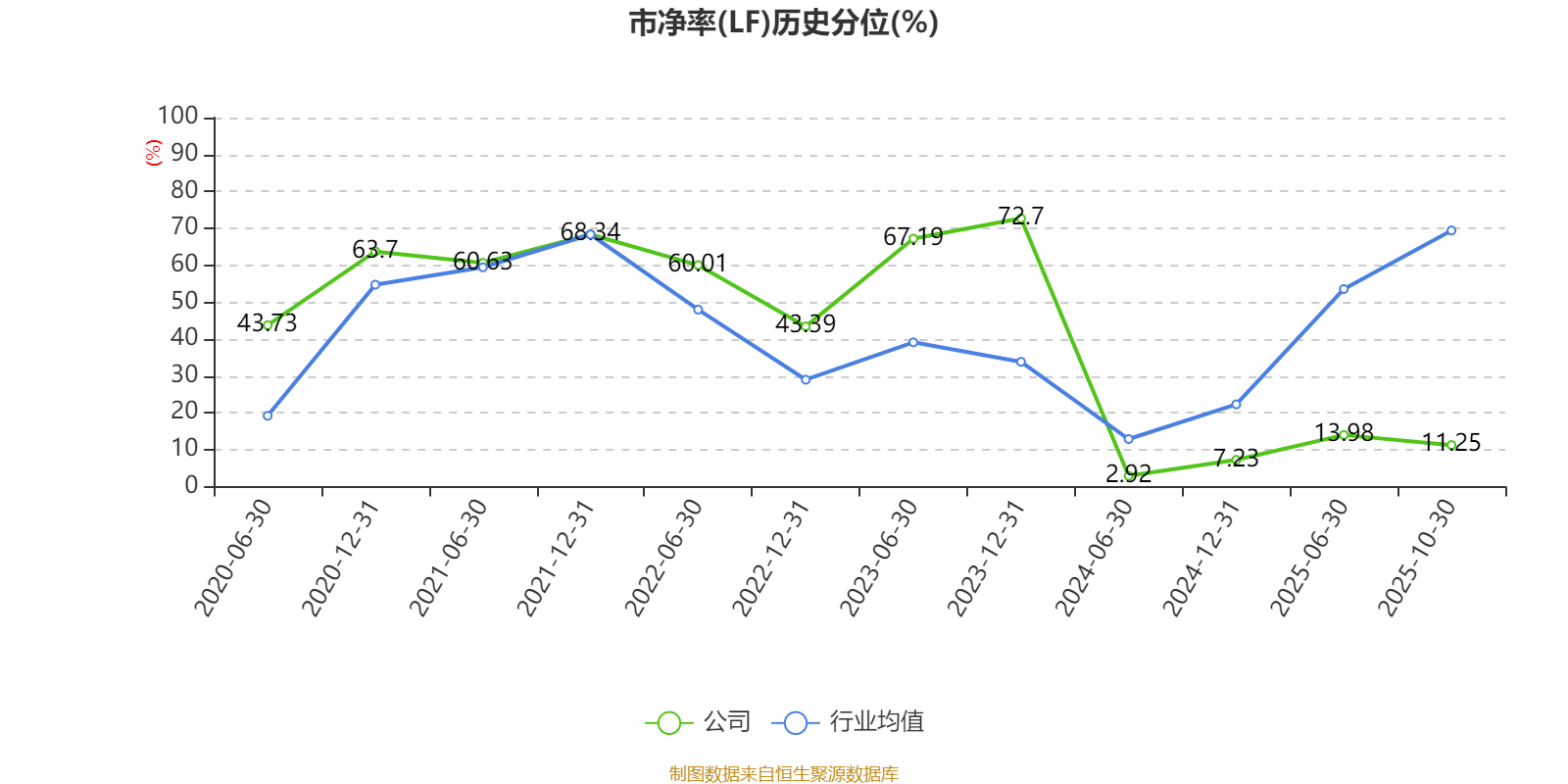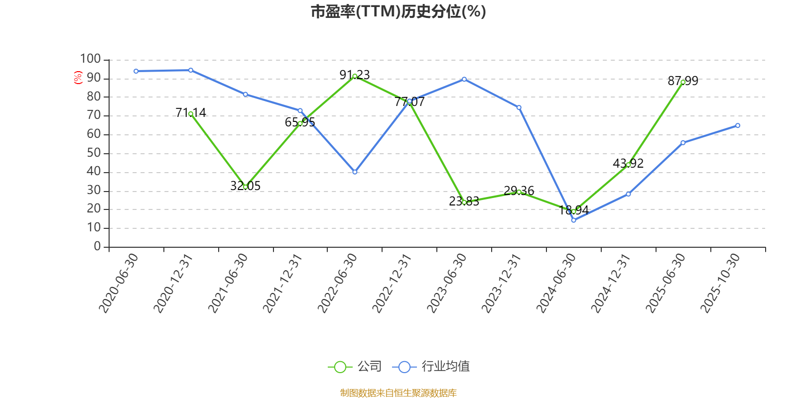 市盈率、市净率为负时,不显示当期分位数,会导致折线图中断。