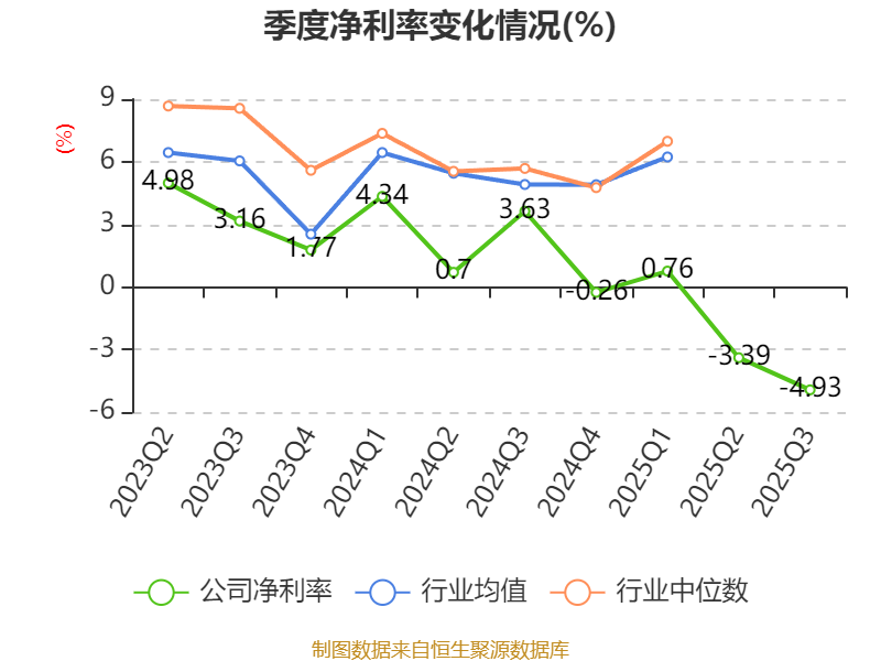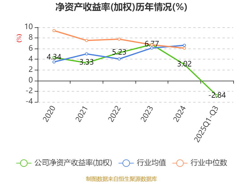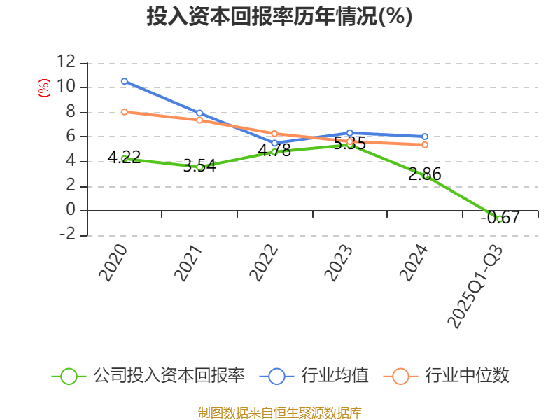 盈利能力方面, 2025年前三季度公司加权平均净资产收益率为-2.84%,同比下降6.31个百分点。公司2025年前三季度投入资本回报率为-0.67%,较上年同期下降3.42个百分点。