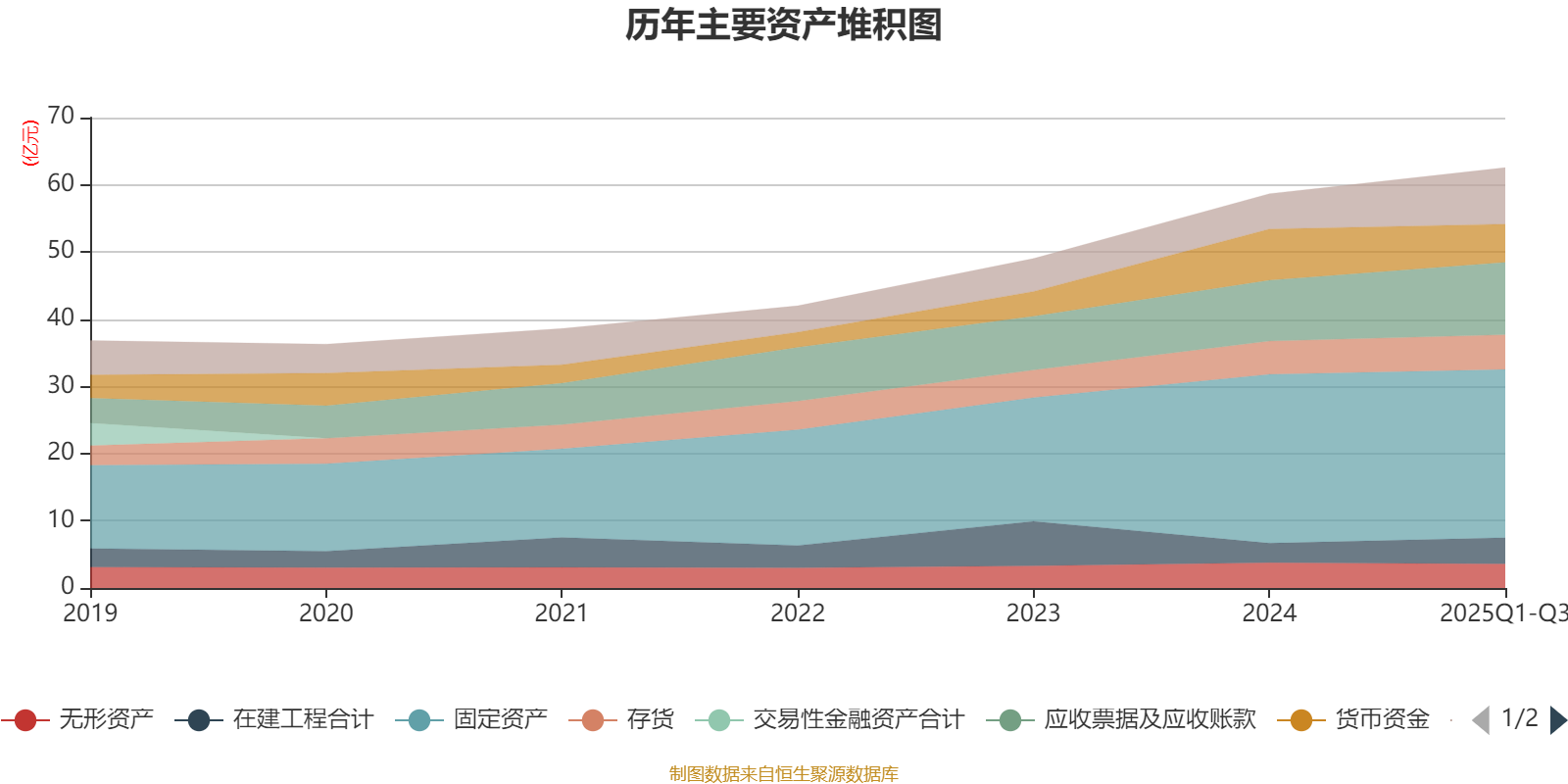 资产重大变化方面,截至2025年三季度末,公司货币资金较上年末减少25.39%,占公司总资产比重下降3.9个百分点;固定资产较上年末减少0.4%,占公司总资产比重下降2.82个百分点;应收款项融资较上年末增加107.7%,占公司总资产比重上升1.94个百分点;应收票据及应收账款较上年末增加19.24%,占公司总资产比重上升1.82个百分点。