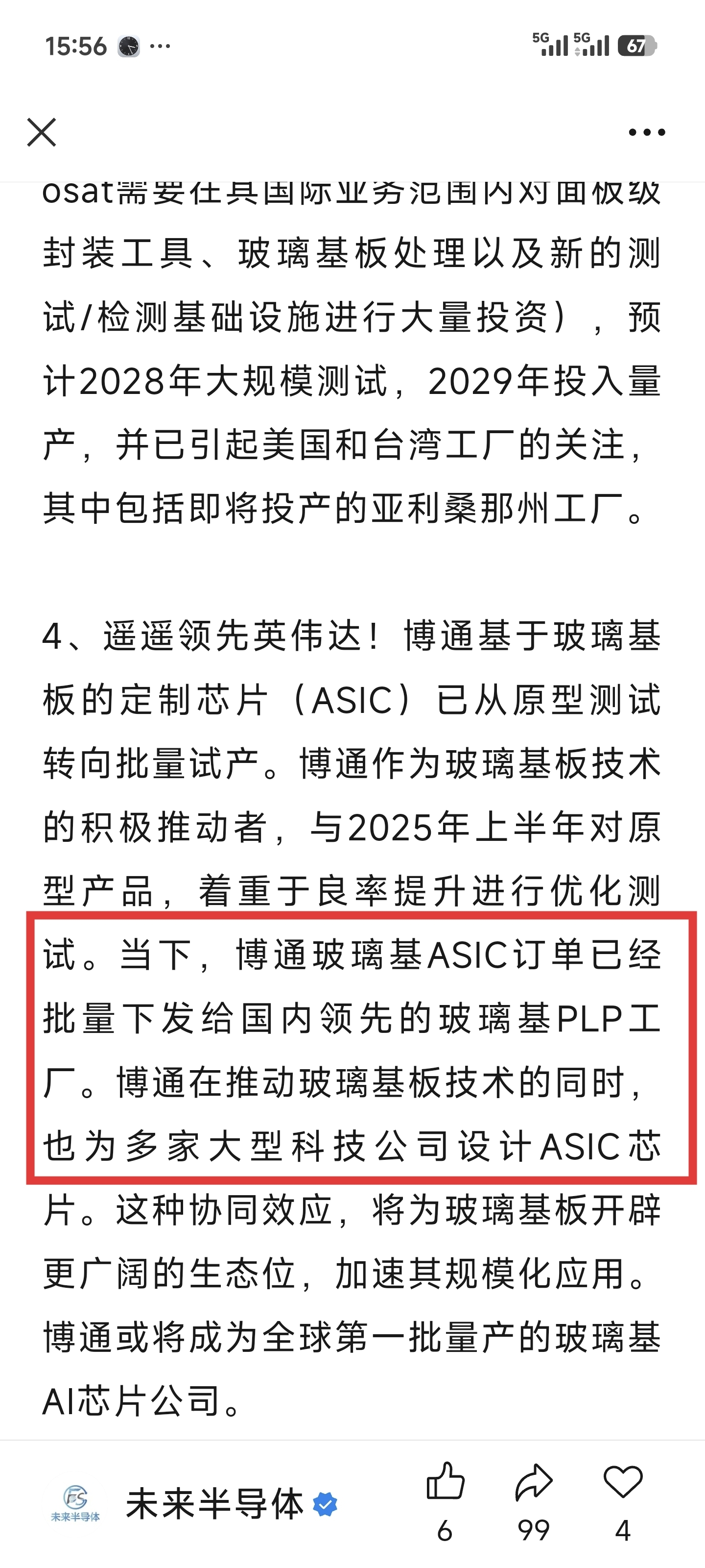 博通的玻璃基板供货商是沃格?