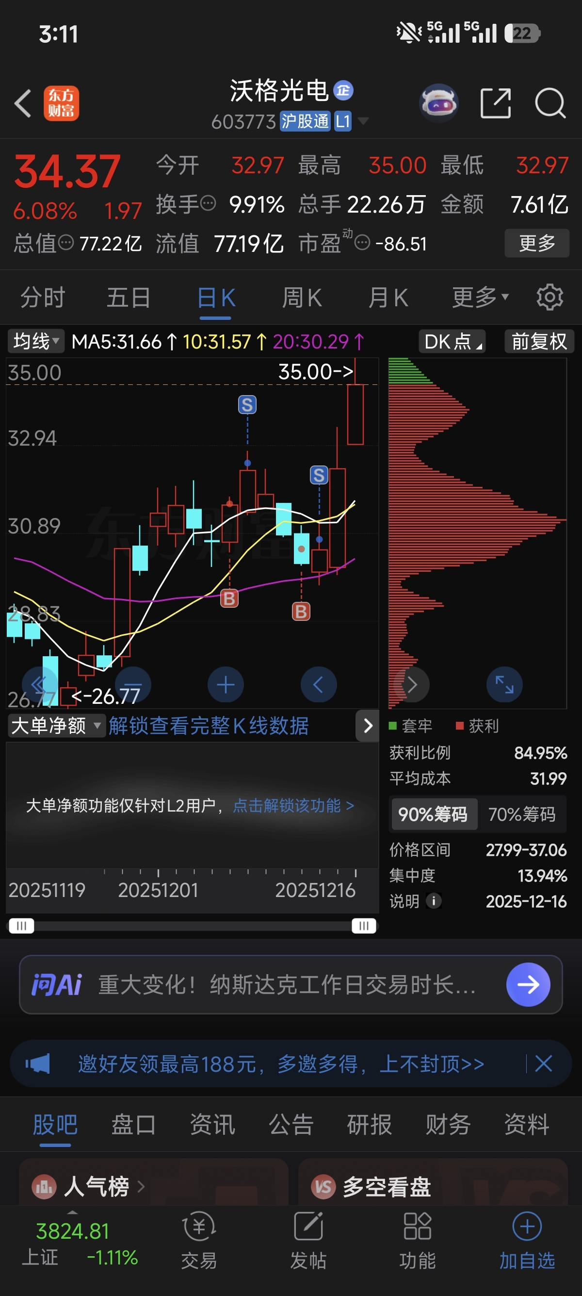 $沃格光电(SH603773)$ 最开始操作还可以 就是就是唉 我是韭菜