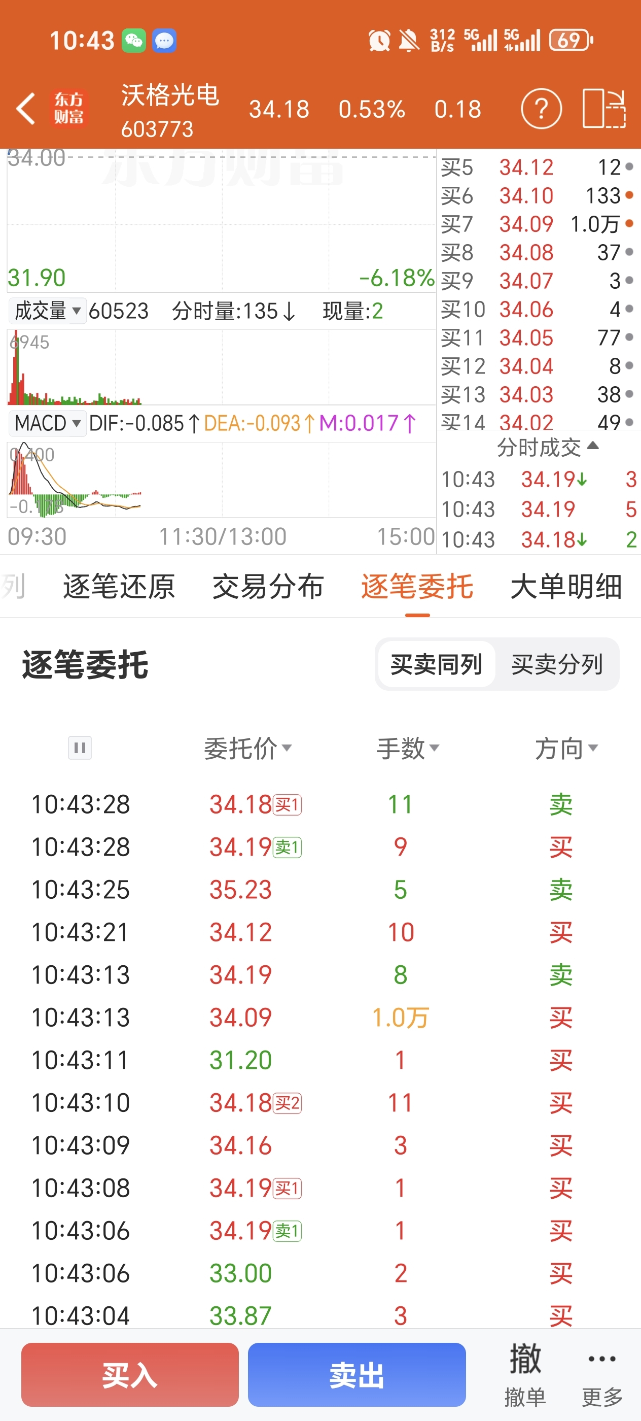 $沃格光电(SH603773)$ 一年了,第一次万手,虽然说挂着玩