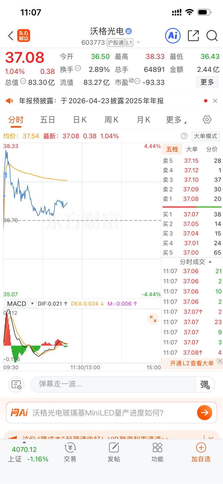 $沃格光电(SH603773)$ 跑早了点