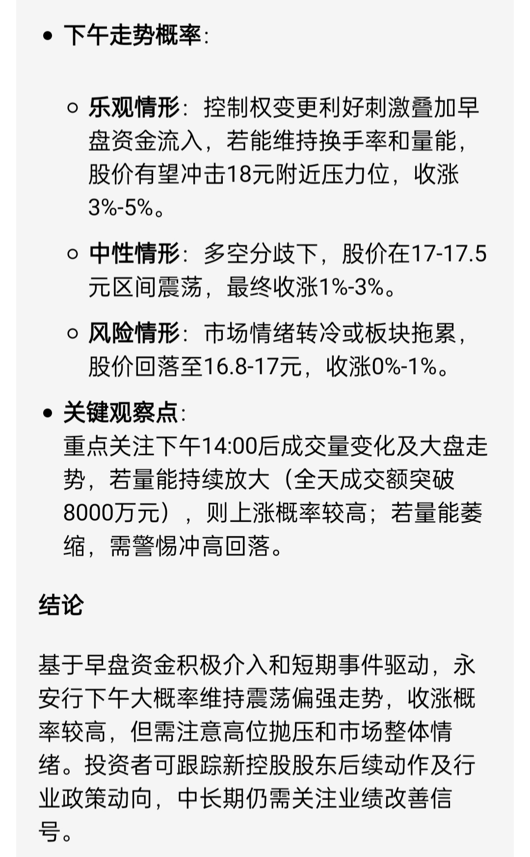 $永安行(SH603776)$ 豆包来预判下下午走势