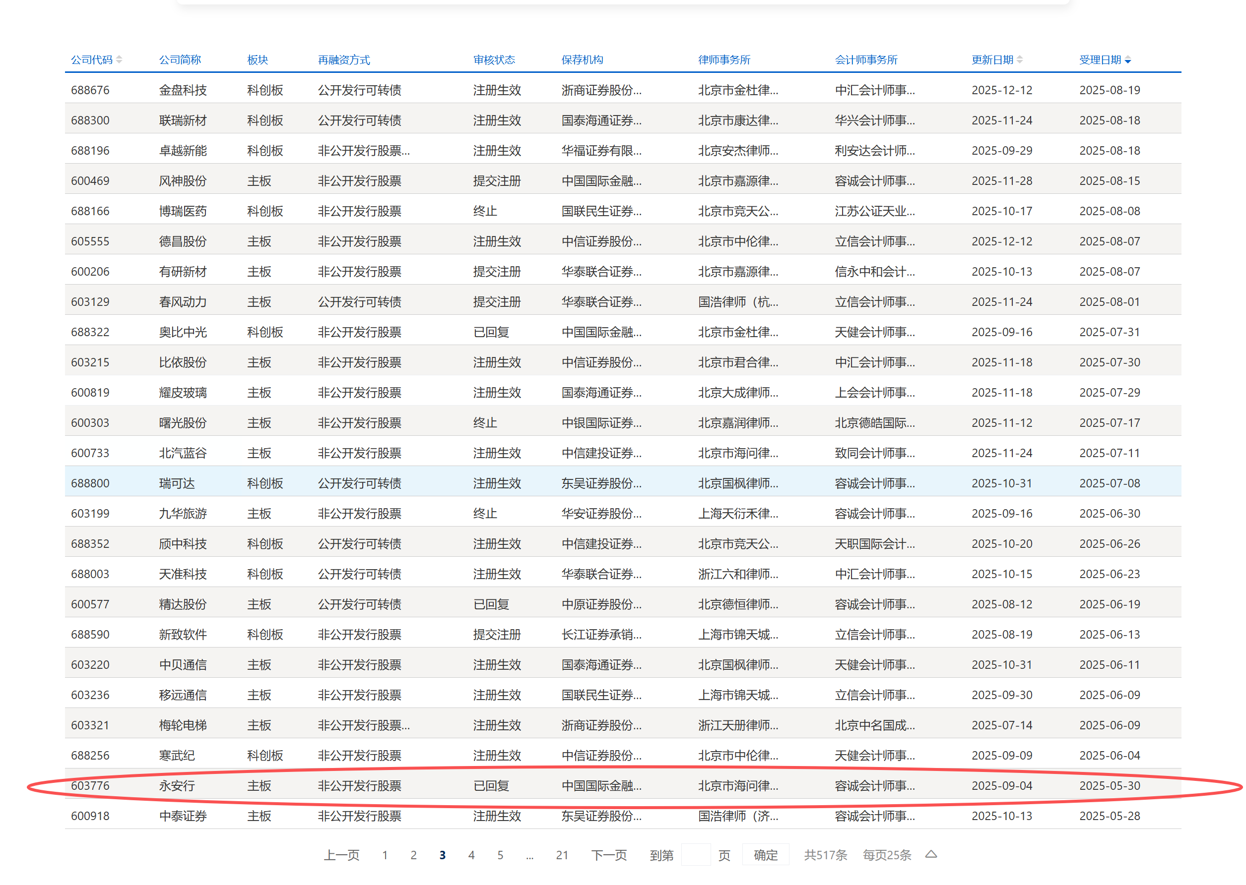 9月份提交申请的公司大部分都注册完成了,为何永安行5月份申请的定增审核还没有结果?