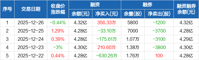 永安行:融资净买入356.33万元,融资余额4.32亿元(12-26)