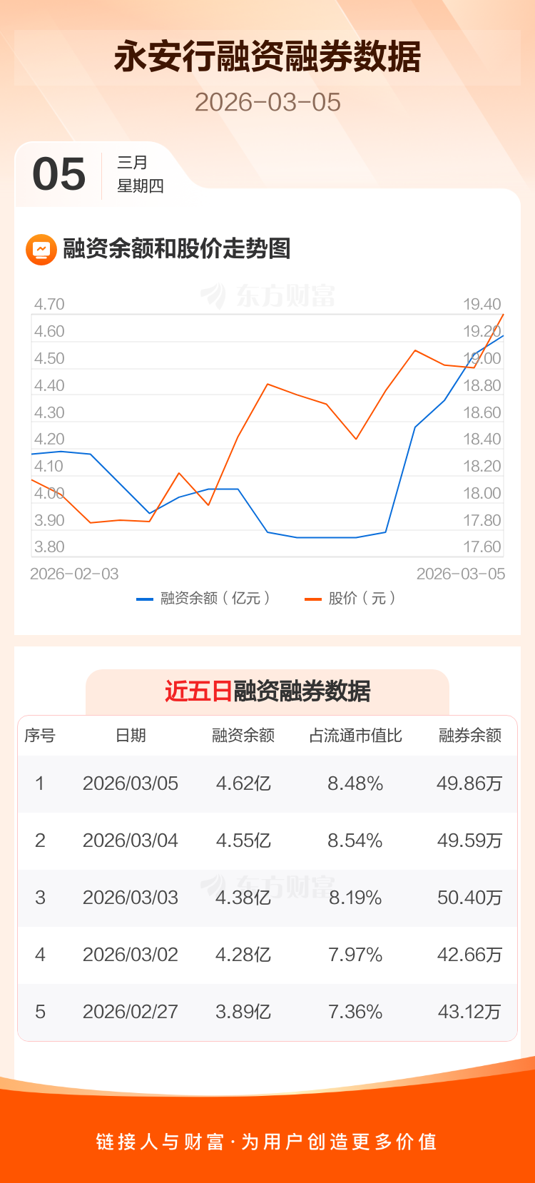 交易所最新数据显示,永安行于2026年3月5日获融资买入897.68万元,融资偿还242.28万元,当日融资净买入655.4万元。目前,该股融资余额4.62亿,占流通市值比例为8.48%。
