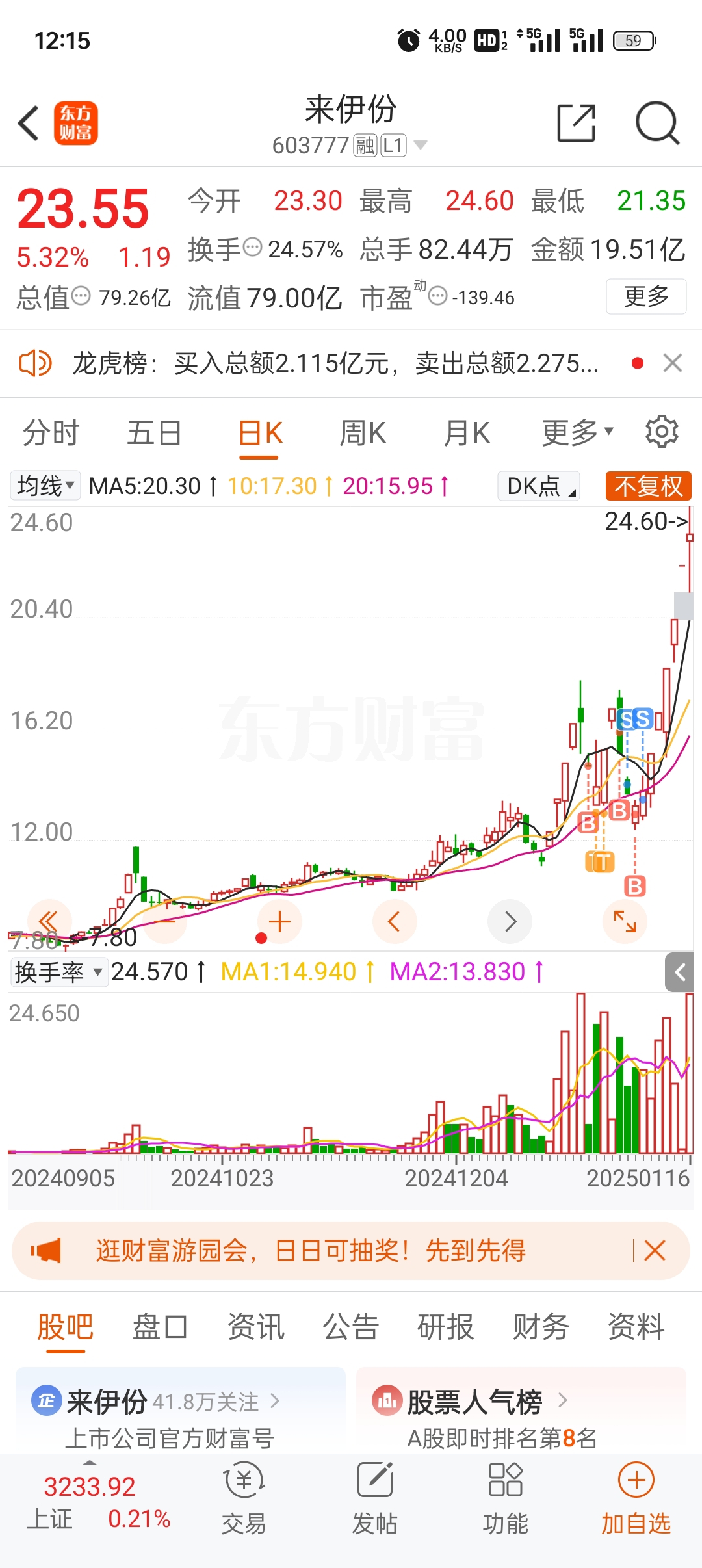 $来伊份(SH603777)$