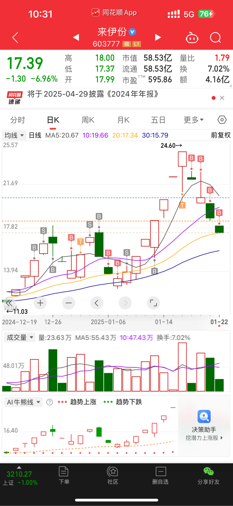 $来伊份(SH603777)$ #炒股日记# 53个点没跑掉,现在-10个点