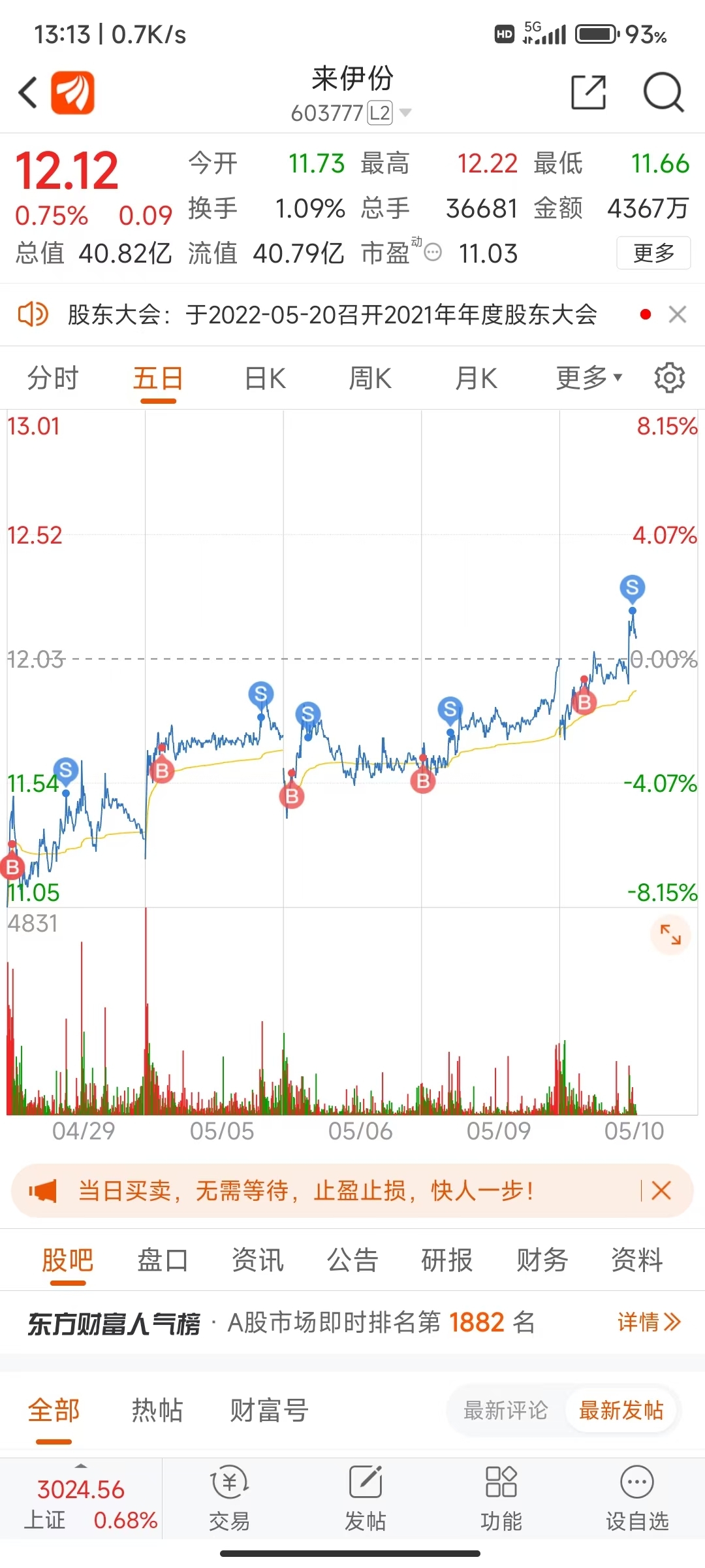 $来伊份(SH603777)$ #实盘记录# #炒股日记#