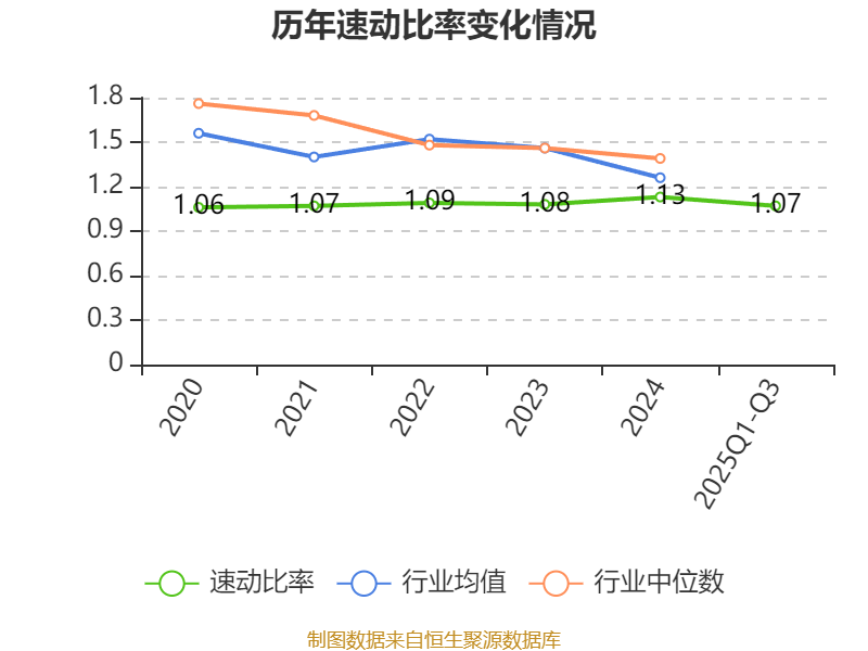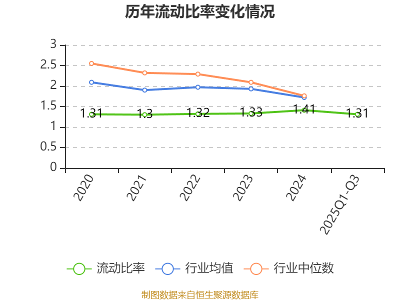 2025年前三季度,公司流动比率为1.31,速动比率为1.07。