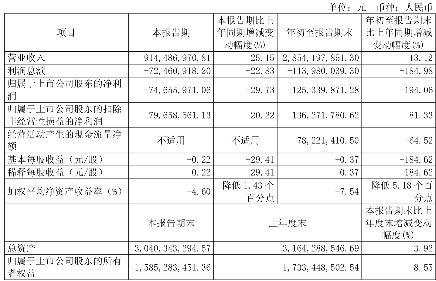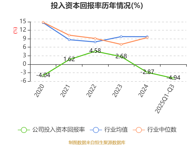 盈利能力方面, 2025年前三季度公司加权平均净资产收益率为-7.54%,同比下降5.18个百分点。公司2025年前三季度投入资本回报率为-4.94%,较上年同期下降3.44个百分点。