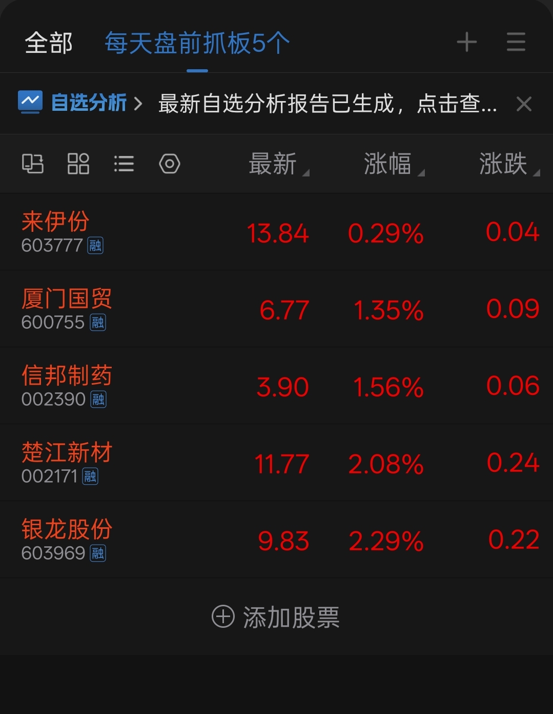$来伊份(SH603777)$ $信邦制药(SZ002390)$ $厦门国贸(SH600755)$ #合富中国:控股股东拟减持不超2%股份# #朱雀三号火箭发射入轨!商业航天关注度飙升# #谷歌TPU产量预期猛增,受益股有哪些?# #万科20亿元债券拟展期一年!危机解除?# #福建本地股持续活跃!行情逻辑是什么?#