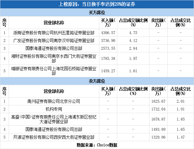 机构现身龙虎榜,国晟科技换手率达31.76%(10-17)