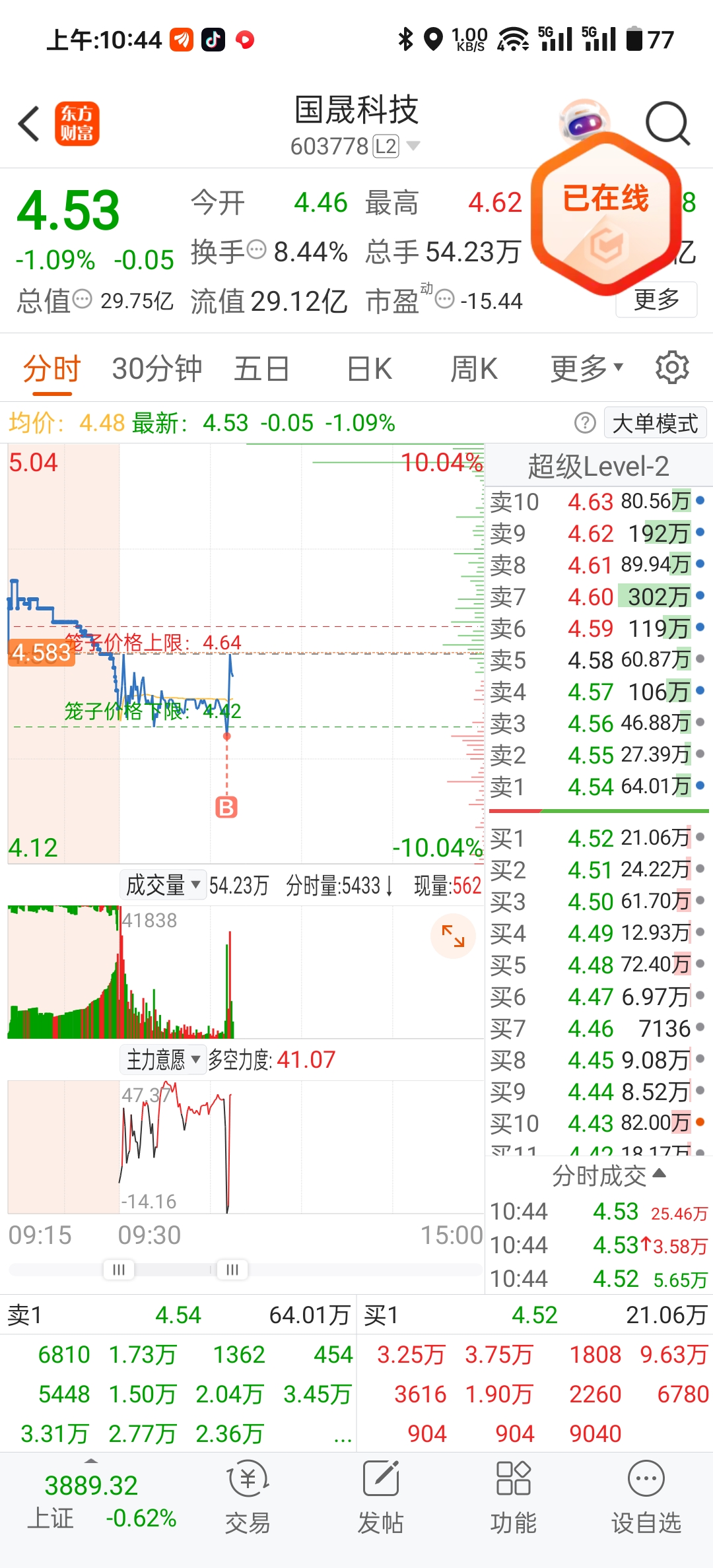 $国晟科技(SH603778)$ 挂单4.4居然成交了