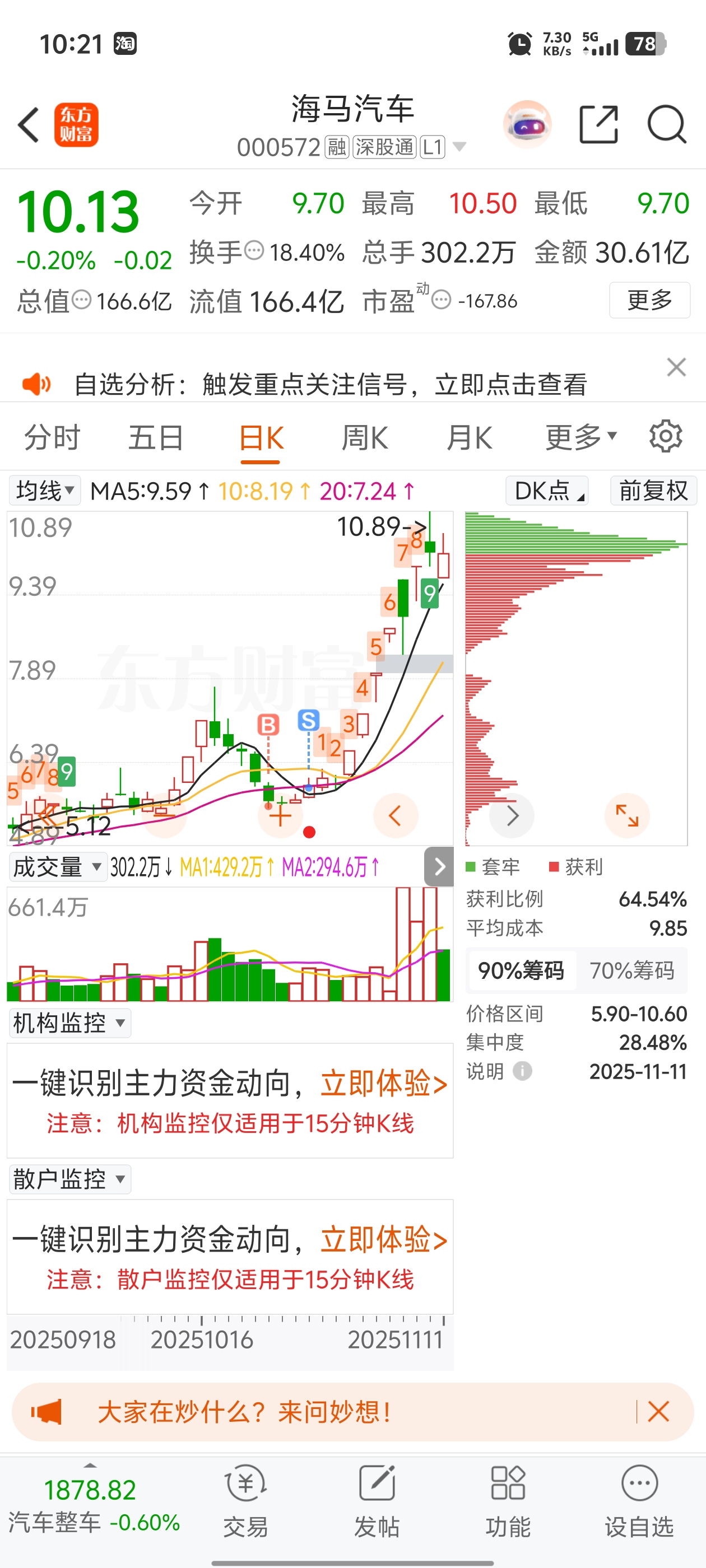 得多蠢才会一个月的时间卖飞两个翻倍股?不对,海马汽车我是套利盈利走的才能叫做卖飞