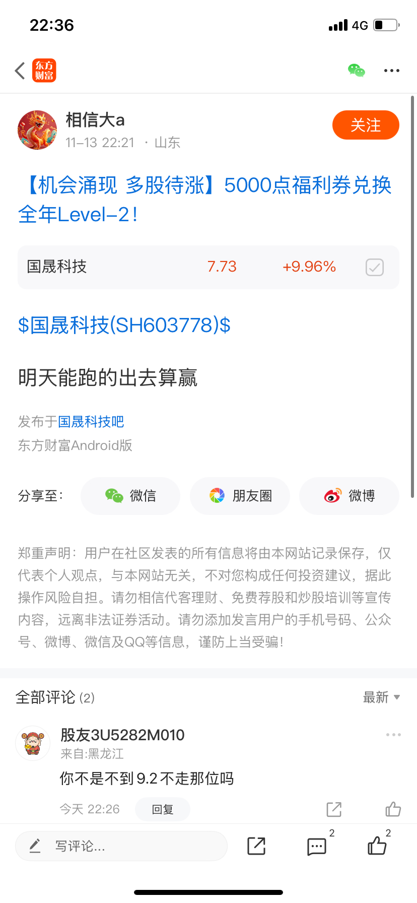 温馨提示: 1.根据《证券法》规定,禁止编造、传播虚假信息或者误导性信息,扰乱证券市场;2.用户在本社区发表的所有资料、言论等仅代表个人观点,与本网站立场无关,不对您构成任何投资建议。用户应基于自己的独立判断,自行决定证券投资并承担相应风险。《东方财富社区管理规定》