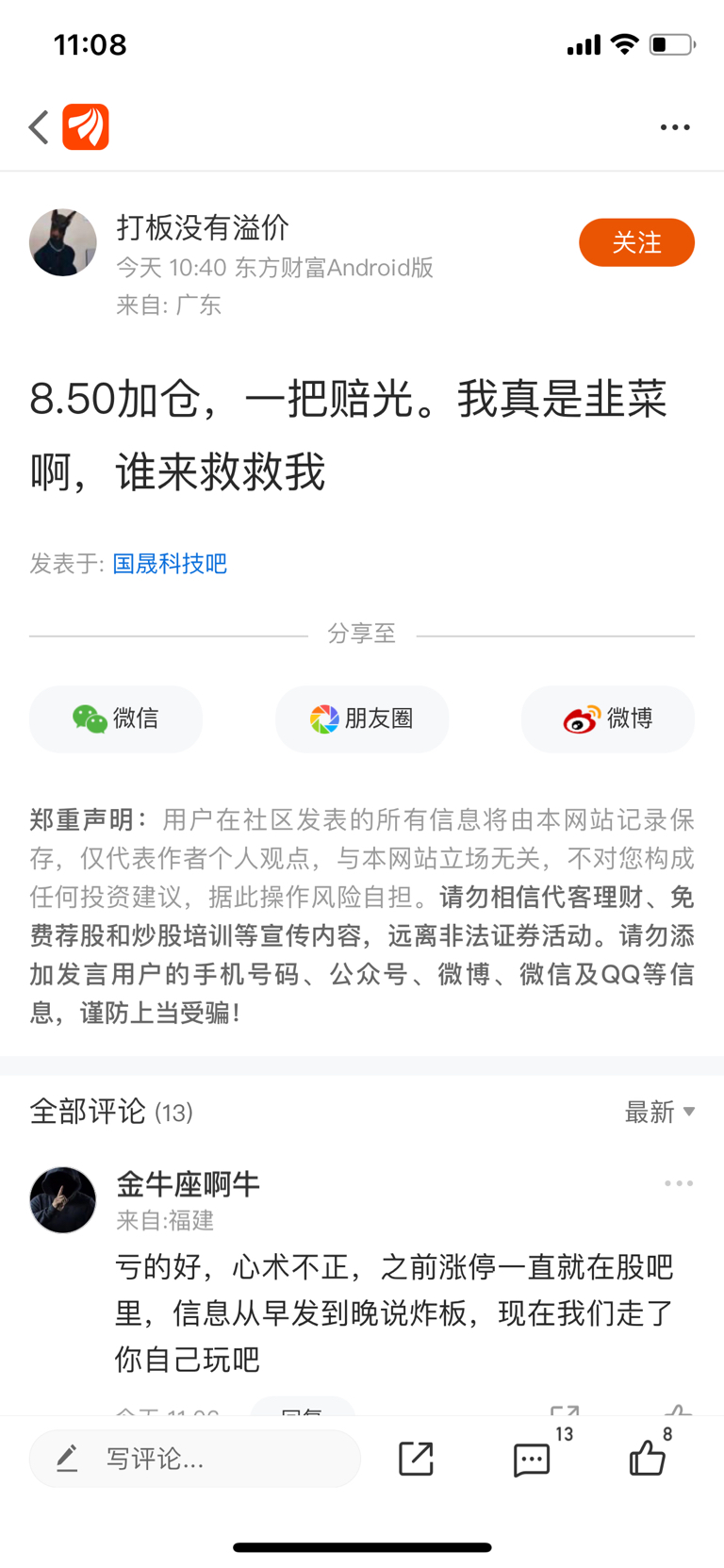 温馨提示: 1.根据《证券法》规定,禁止编造、传播虚假信息或者误导性信息,扰乱证券市场;2.用户在本社区发表的所有资料、言论等仅代表个人观点,与本网站立场无关,不对您构成任何投资建议。用户应基于自己的独立判断,自行决定证券投资并承担相应风险。《东方财富社区管理规定》