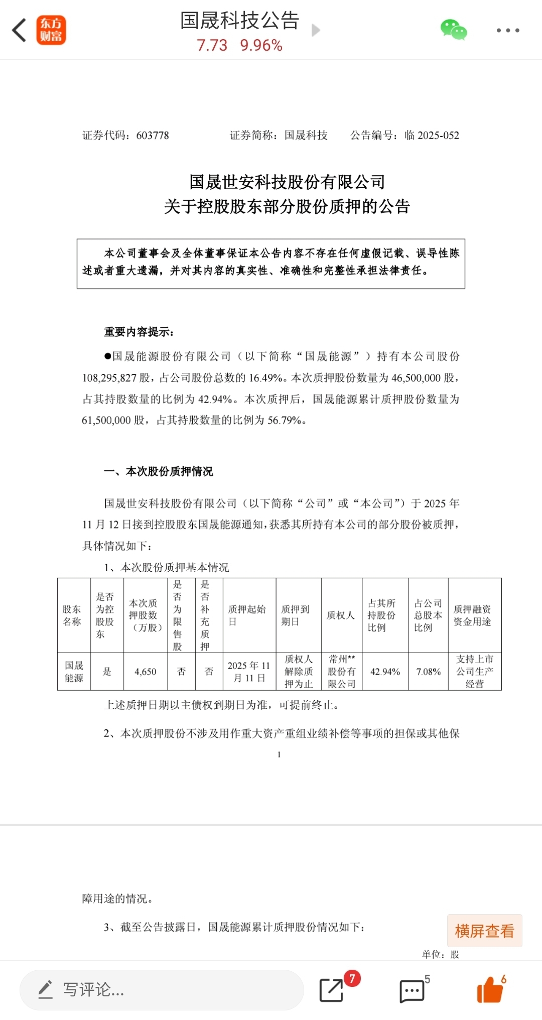 国晟董事长2000亿市值的雄心壮志需要同样雄心壮志的股东,持仓的股东和未来的股东们,你是那个有雄心壮志的人吗?我们看他在干什么?他以前是一个市长,现在他却在股权融资,他只有16.49%的股份,但是他却在拿着这不多的股权在质押,他要干大事,他要实现他2000亿市值的梦想,已经于11月12日、11月13日连续两天公告进行股权质押融资了,他需要钱!