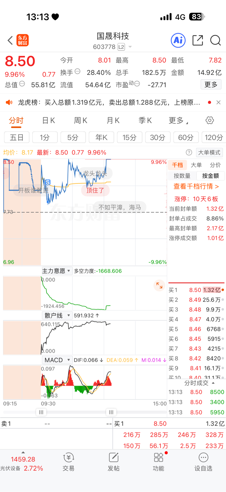 $国晟科技(SH603778)$ 早上把我吓跑了