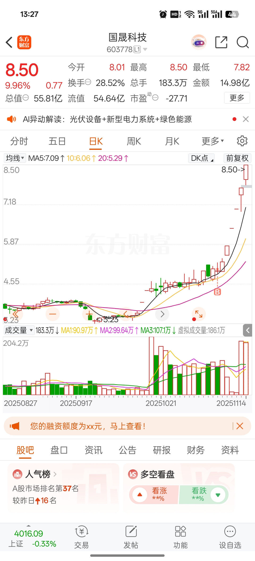 $国晟科技(SH603778)$
