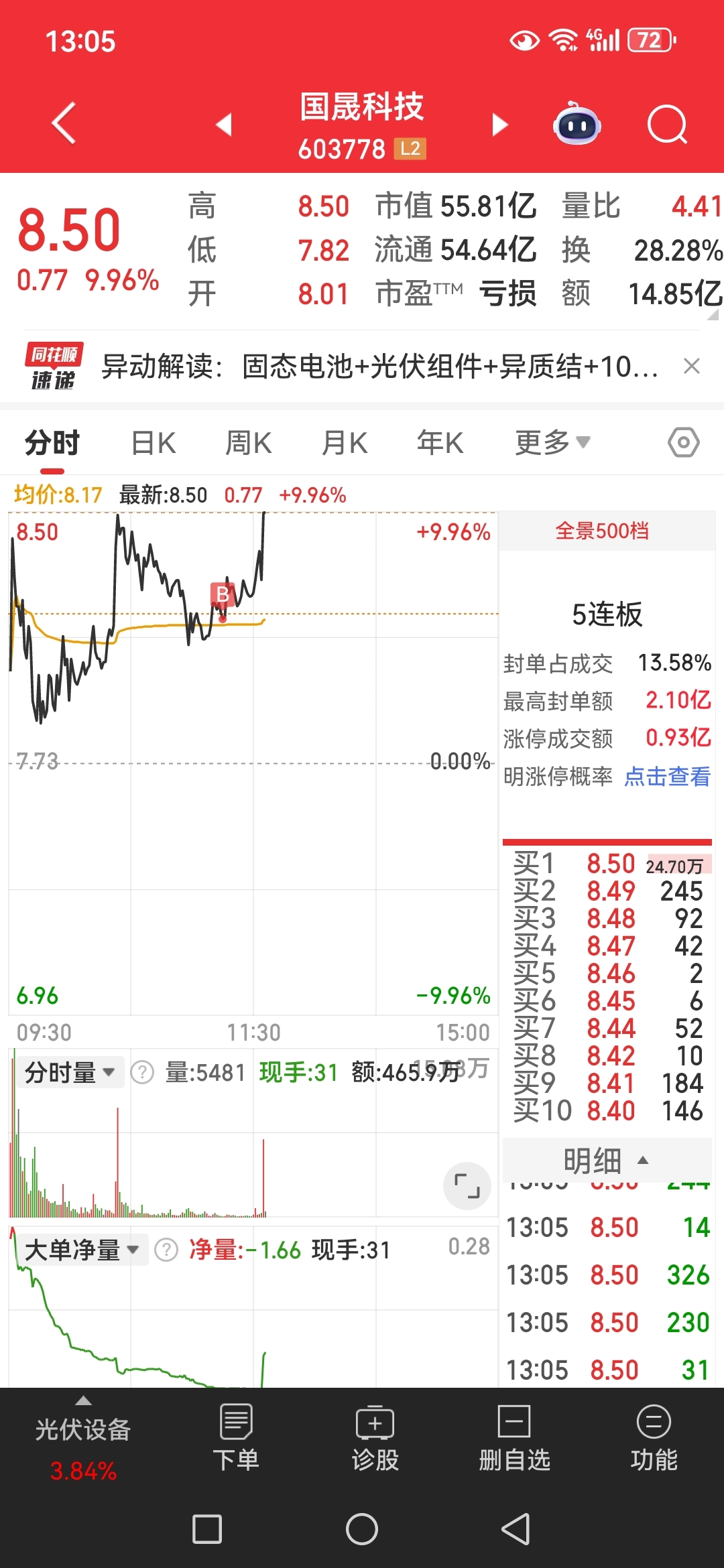 $国晟科技(SH603778)$ 今天进来了周一能吃肉吗