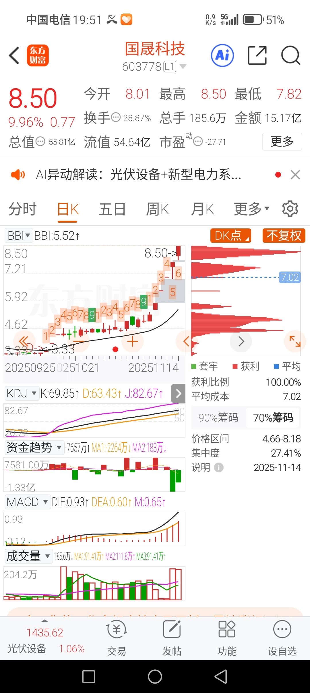 $国晟科技(SH603778)$ 本周战绩,周涨速60.98%