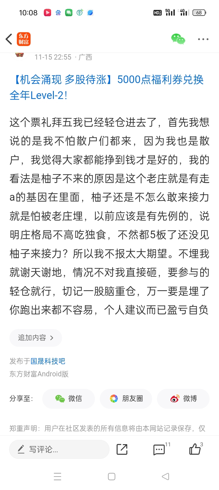 温馨提示: 1.根据《证券法》规定,禁止编造、传播虚假信息或者误导性信息,扰乱证券市场;2.用户在本社区发表的所有资料、言论等仅代表个人观点,与本网站立场无关,不对您构成任何投资建议。用户应基于自己的独立判断,自行决定证券投资并承担相应风险。《东方财富社区管理规定》