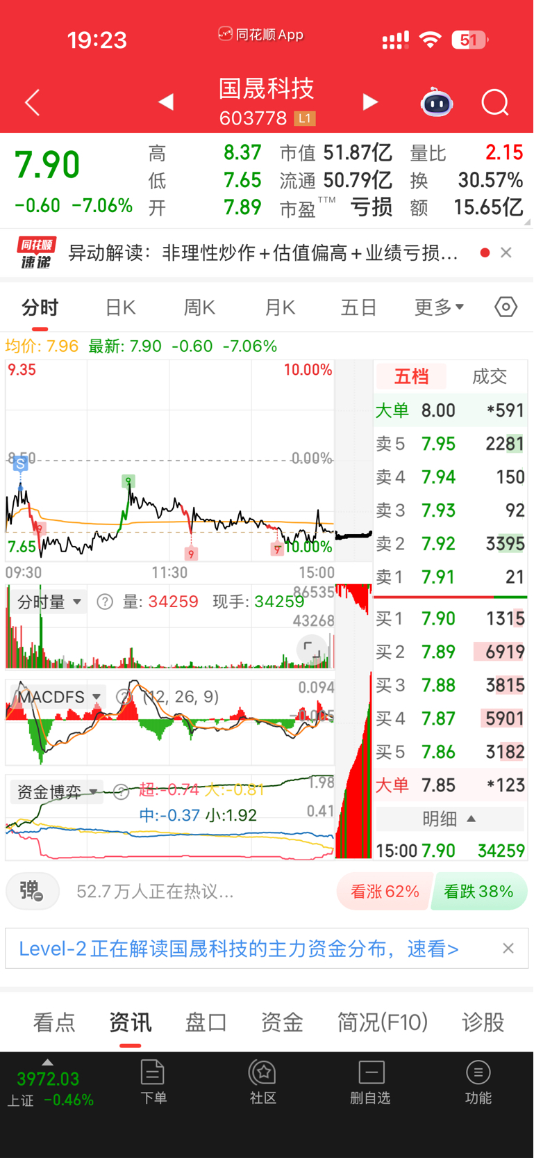 $国晟科技(SH603778)$ 今天高点走了,感谢主力,吃满5个板,有机会再来
