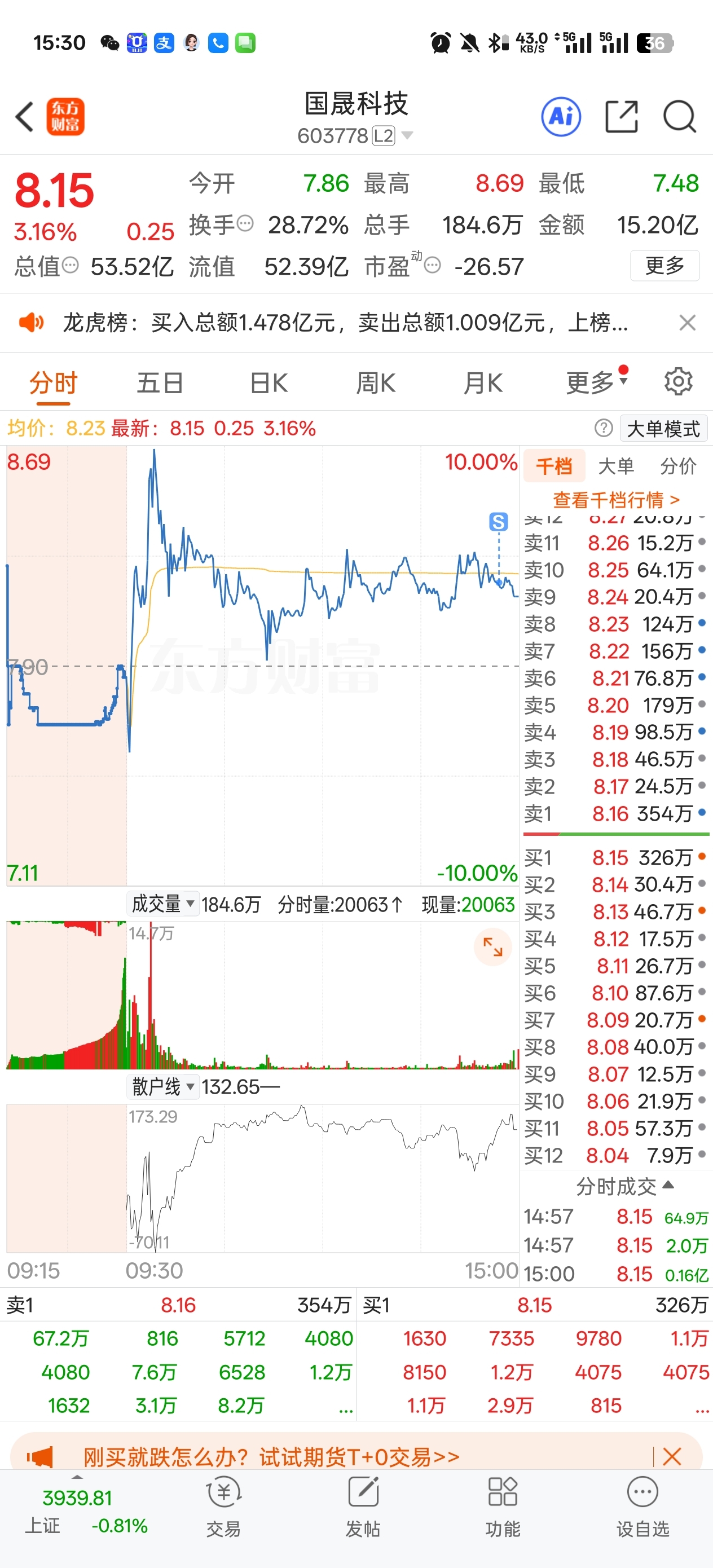 $国晟科技(SH603778)$ 涨停没卖,尾盘走了,还以为能走成龙头,看起来很难了。